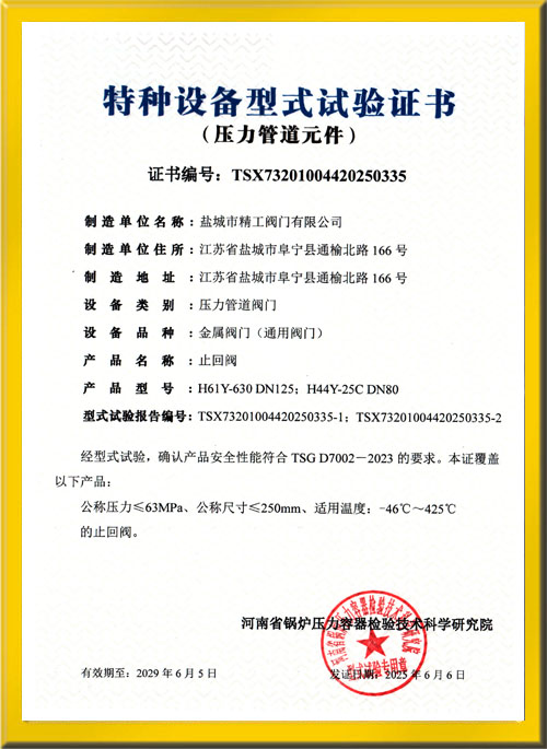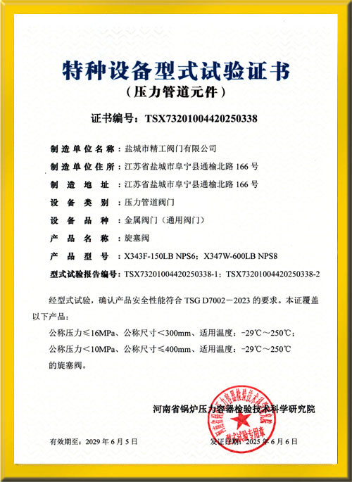 調(diào)節(jié)閥(控制閥)試驗(yàn)證書